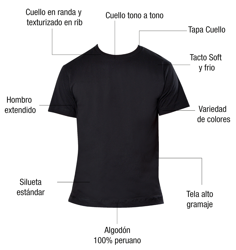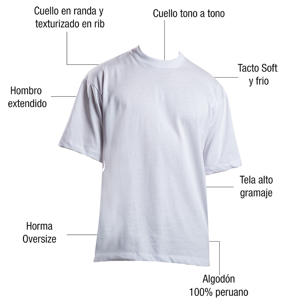Todas nuestras camisetas están hechas de 100% algodón peruano, de alta calidad. Usamos gramajes de 200g y 300g para ofrecerte una tela suave, transpirable y duradera, ideal para tu comodidad.